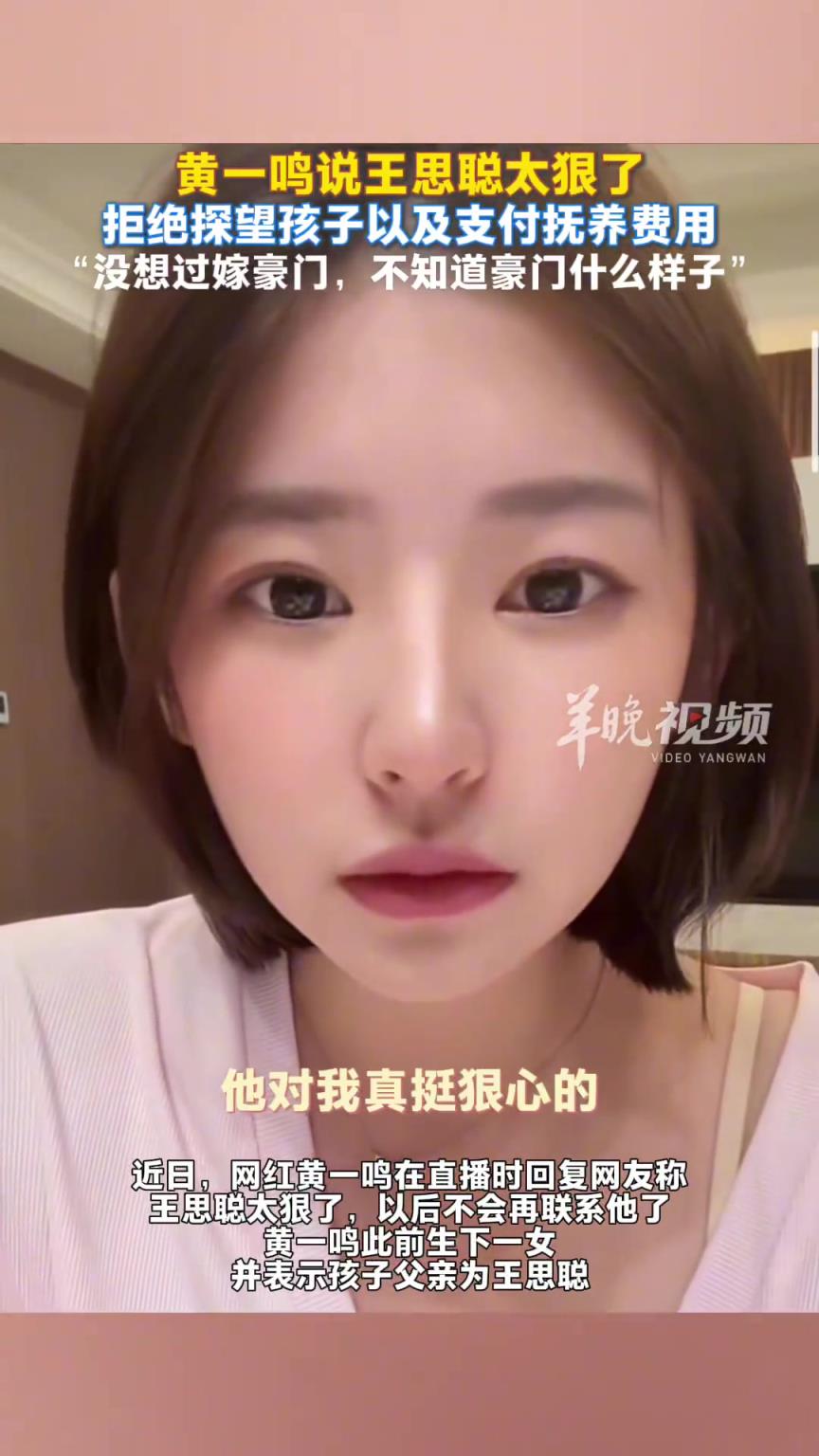 黄一鸣说王思聪太狠了,拒绝探望孩子以及支付抚养费用