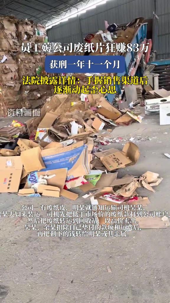 员工薅公司废纸皮狂赚83万,被判1年11个月