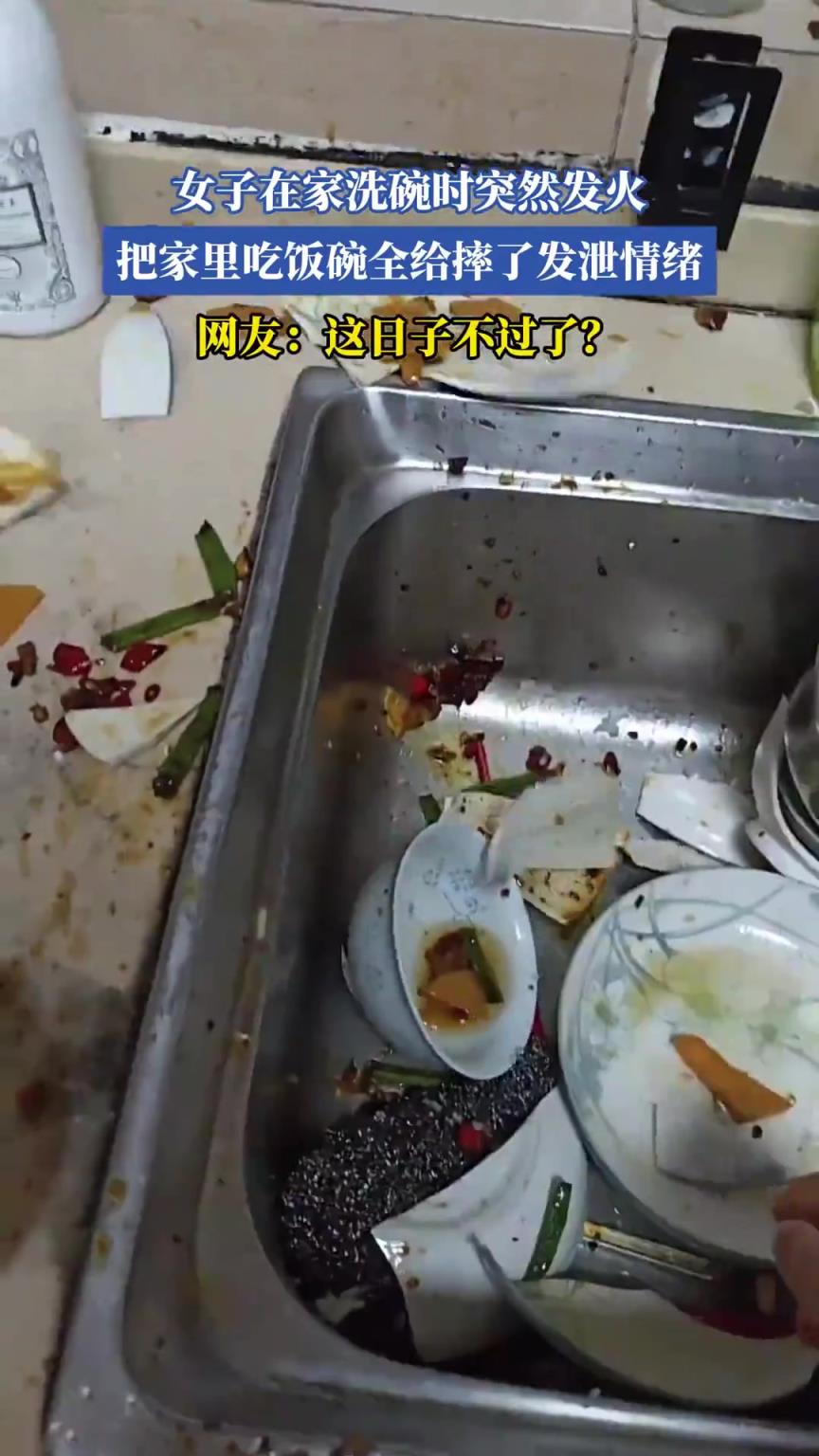女子在家洗碗时突然发火,把家里吃饭碗全给摔了发泄情绪