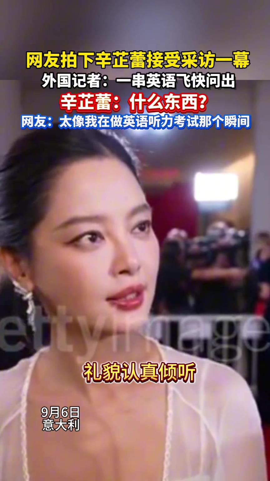外国记者一长串英语采访提问辛芷蕾,辛芷蕾:什么东西?