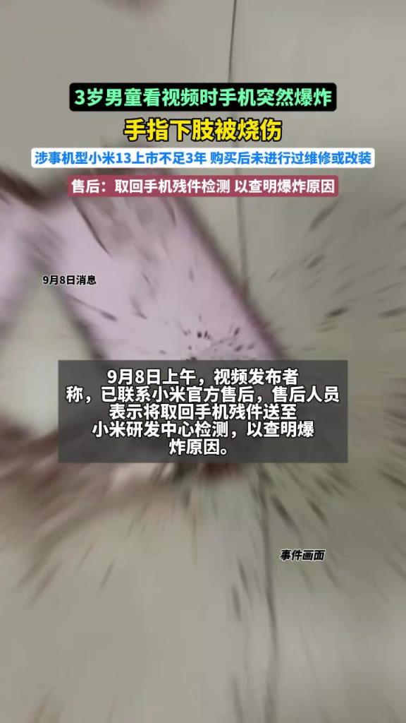 3岁男童看视频时手机突然爆炸,手指下肢被烧伤
